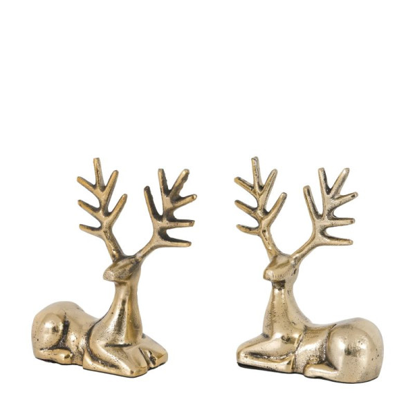 Bring a touch of timeless elegance to your home with this Antique Gold Stag Ornament Set of 2. Crafted from durable aluminium and finished in a stunning antique gold, these majestic deer decorations add warmth and sophistication to any space.