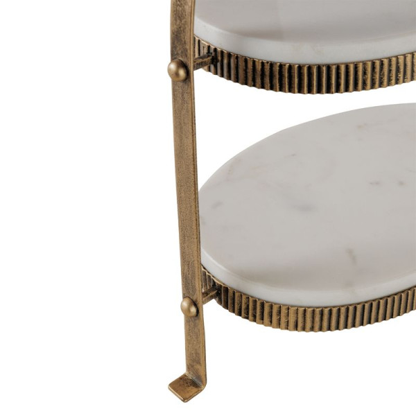 Bring timeless elegance to your Christmas entertaining with the Belvedere Aged Gold Oval Two-Tiered Stand, where luxury meets practicality. Crafted from iron and smooth white Banswara marble, this two-tier stand adds a touch of sophistication to any festive spread. Its corrugated iron detailing in aged gold creates a warm, refined glow, making it a perfect centrepiece for holiday gatherings or year-round display.