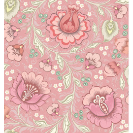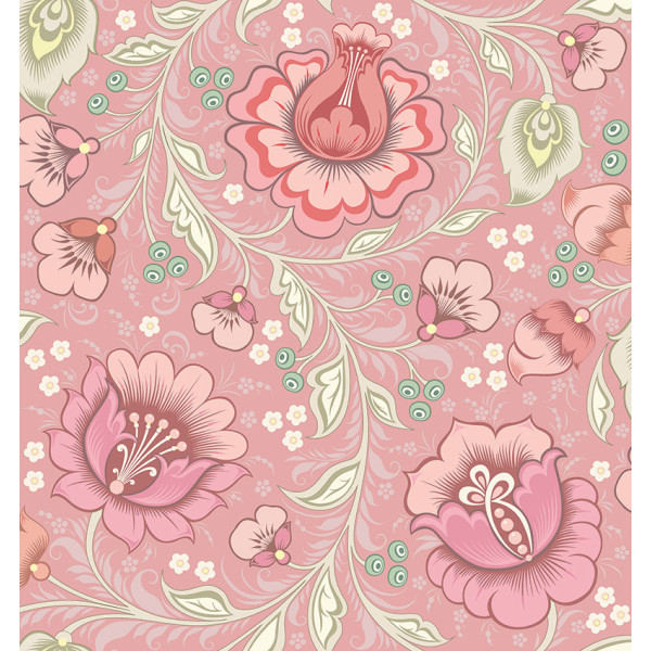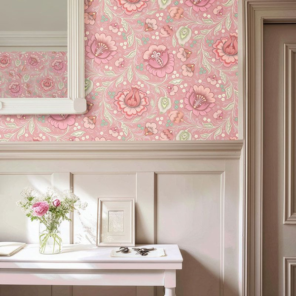 The folk-inspired, decorative style gives the wallpaper a timeless feel, while the curving stems and rhythmic layout create movement without overwhelming the space. The overall effect is soft, balanced, and effortlessly elegant.