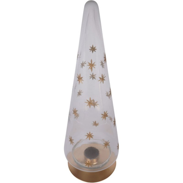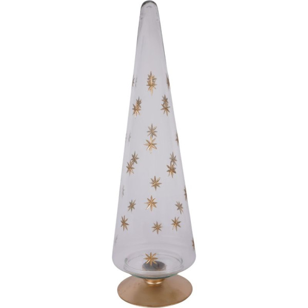 Bring a touch of magic to your festive décor with this artisan-crafted clear glass Christmas tree, adorned with golden etched stars.
