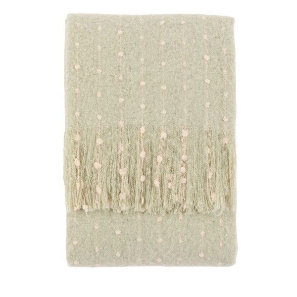 Bring calm, understated elegance to your space with the Dottie Faux Mohair Throw in Sage Green. Featuring a subtle woven dottie texture and soft fringed edges, this throw is designed to add warmth, texture, and a relaxed, natural feel to any interior.