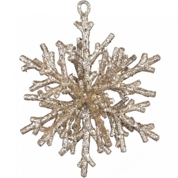 This Glittered Coral Snow Flake would make a great addition to any Christmas theme, beautiful champagne glittered decorations at 15 cm wide that depict coral branches. Ideal for Christmas Tree decorations with a moulded hanging loop for display purposes. Display singularly or group together for a dramatic display.