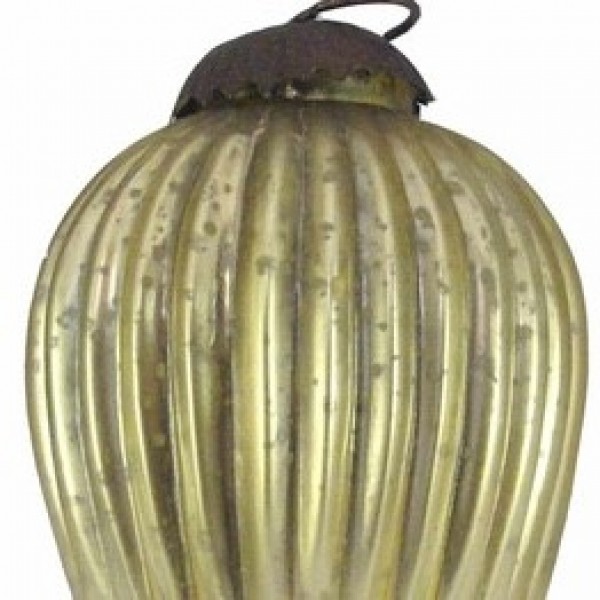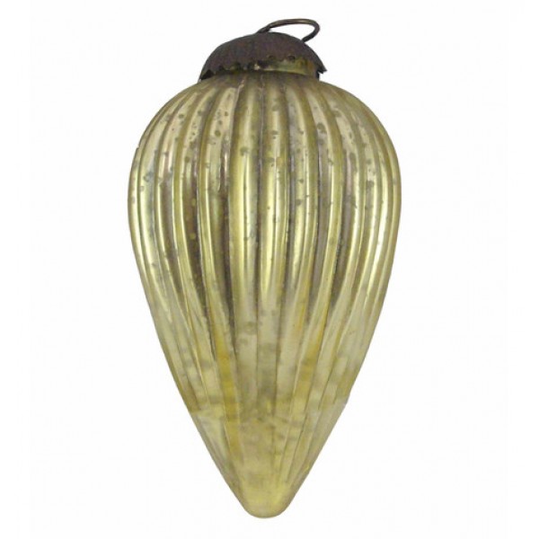 Introduce warm accents colours into your living space for Christmas with this distressed Gold coloured Glass Pine Cone Bauble. Traditional in style and beautifully designed in heavy glass with a textured ribbed finish, complete with a metal cap and circle hook for display purposes.