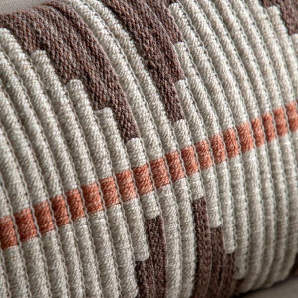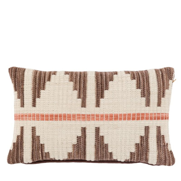 Add warmth and character to your home with this handwoven lumbar cushion, designed with earthy tones and a bold geometric pattern. The mix of cream, brown, and terracotta shades makes it the perfect boho throw cushion for any sofa, chair, or bed.