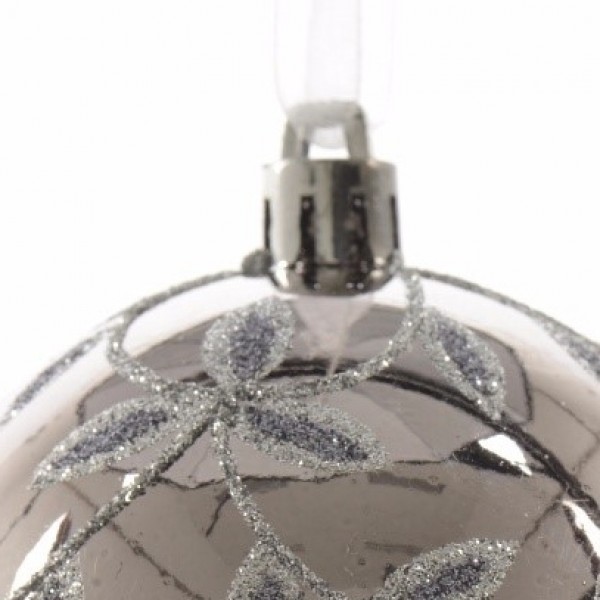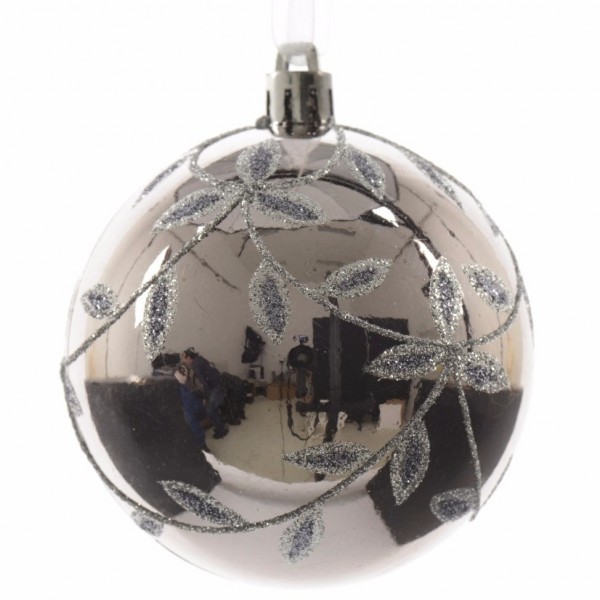 Christmas would not be the same without a touch of glitz and glamour, so why not update your décor for 2017 with this decorative leaf designed glossy bauble. A modern slate grey colour with silver glitter detail, display together for a truly luxurious festive display.Complete with ribbon for hanging purposes.