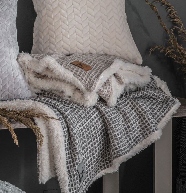 Finish off dressing your sofa with one of our fabulous Sherpa throws. It is available in natural and grey and because of the metallic embroidery on the cushion both colours would go perfectly with the cushion . At £55 it’s the perfect Christmas present if you want to share some seasonal snuggles with your nearest and dearest. We have a huge range of opulent and comforting throws and blankets to choose across the rest of our site, so there really is something for everyone.