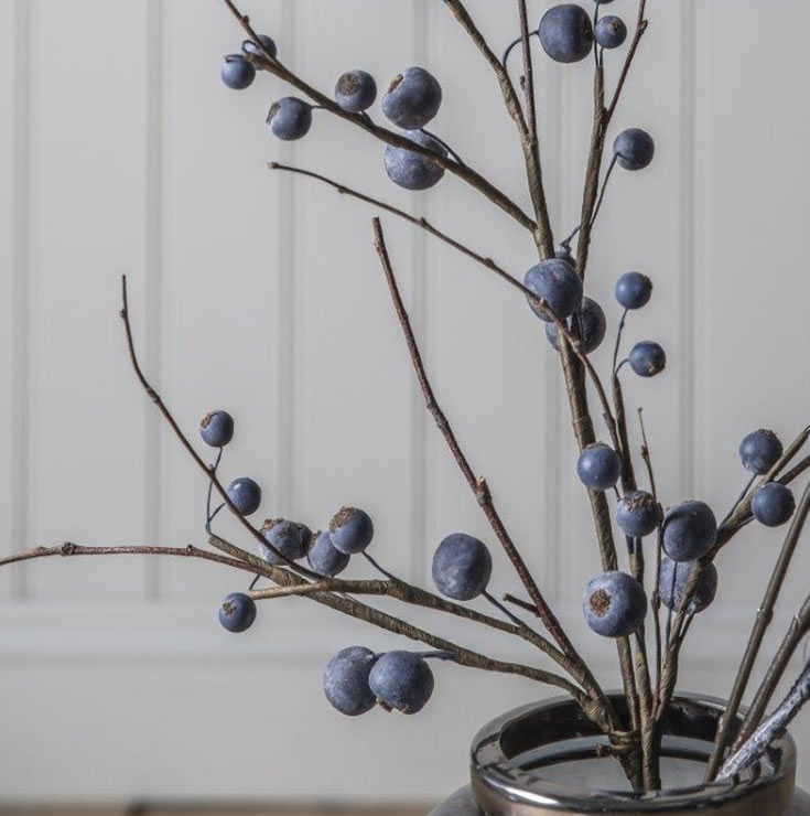 Consider the other areas of your home in which you will be spending your time this winter too. Your hallway is somewhere that you spend a great deal of time whether you realise it or not. What’s more, think about all the occasions you open your door to people making deliveries and to neighbours. Having an inviting hallway is important all year around but especially at Christmas. Make your hallway an inviting entry point to your home with jars full of attractive wintry branches. Our blueberry branches look beautiful arranged in jars on a console table in a hallway.