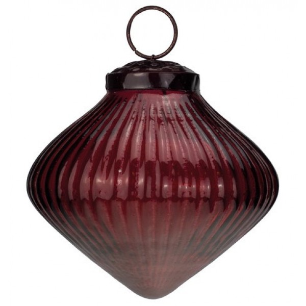 When the light shines through this Red tinted Glass Onion Bauble it reflects a beautiful warm glow. Vintage in style this pressed glass bauble is designed with a ribbed textured finish. For hanging purposes this bauble comes complete with a decorative metal cap featuring a floral design. A timeless piece which ideal to display for years to come.