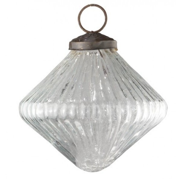 This vintage styled Ribbed Clear Glass Onion Bauble at 10 cm in pressed glass has an elegant charm. Designed with a ribbed textured finish and comes complete with a decorative metal cap with a floral design. A timeless piece which ideal to display for years to come. ( if you like this design or style discover the same item in red) http://www.unitedfurnishings.co.uk/ribbed,red-glass-onions-baubles?keyword=ribbed
