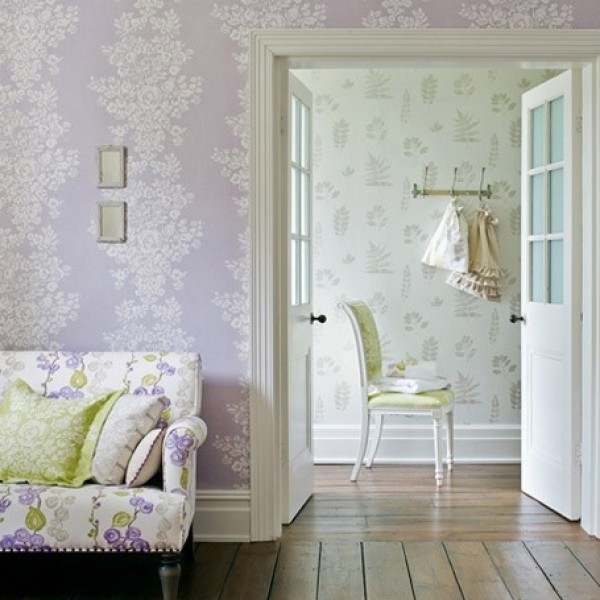 Designer Wallpaper – Lavender is a beautiful modern-day floral damask painted in a loose spontaneous style. This charming design is coloured in soft pastel hues ranging from gentle pastels to modern metallic. A coordinating printed fabric is also available along with a selection of colours please contact for details.