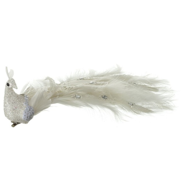 This beautiful White Peacock with Feather Wings is a timeless decoration that you can bring out year after year. A silver-coloured clip attaches the bird firmly to any surface so you can arrange as you wish on a tree or a themed display.